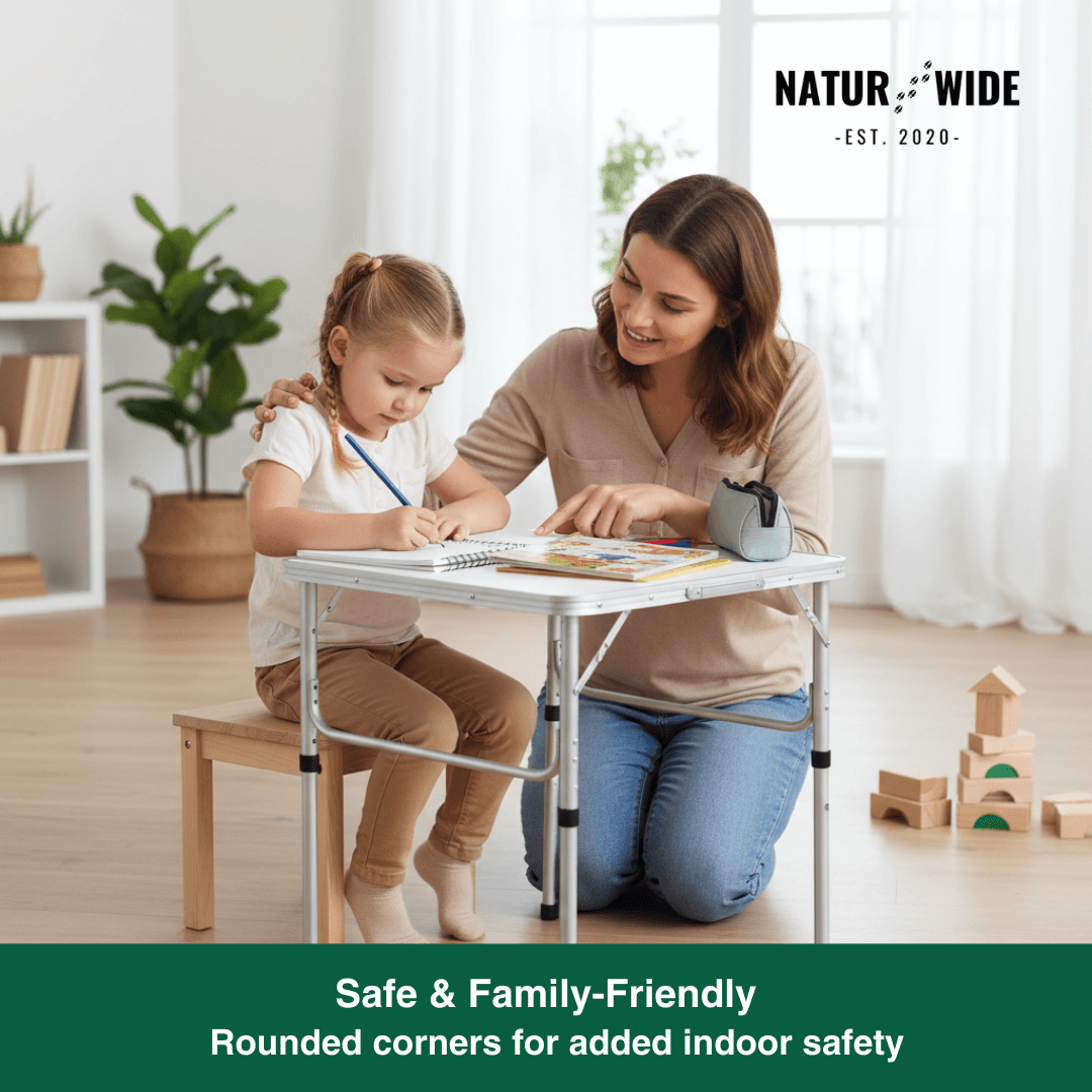 Make your next outdoor adventure more comfortable with our Adjustable Folding Table . This versatile table is the perfect solution for camping trips, backyard BBQs, flea markets, or spontaneous picnics. Thanks to the clever folding design , it transforms in moments from a compact package into a sturdy dining table for up to 4 people (depending on the size selected).