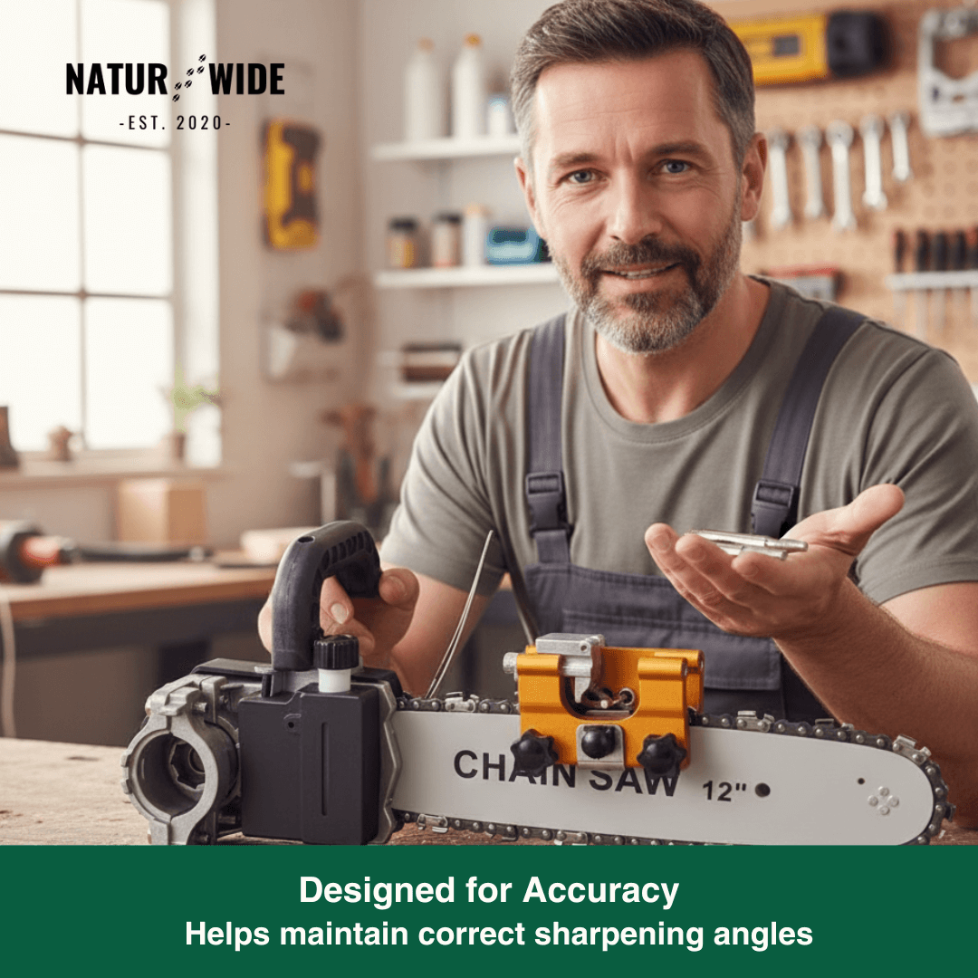 The efficient grinding structure ensures your chainsaw is ready for use again in seconds.