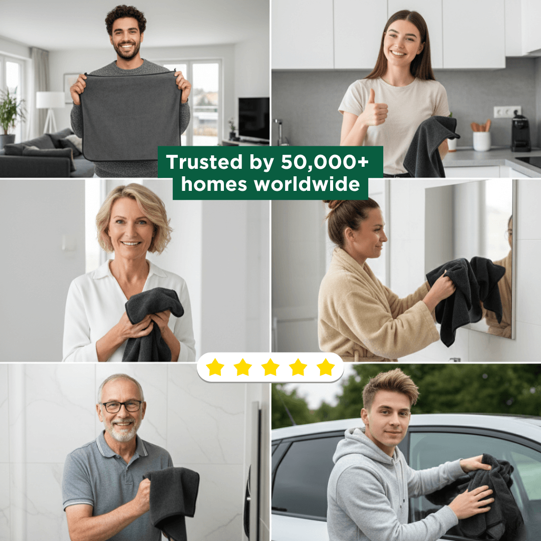 Our premium drying towel is far more than just a shower accessory; it has proven itself as a reliable helper in countless situations. Whether it's windows, sinks, faucets, mirrors, kitchen countertops, or even your car—everything dries effortlessly. Discover the endless possibilities and enjoy perfect results on all surfaces.
